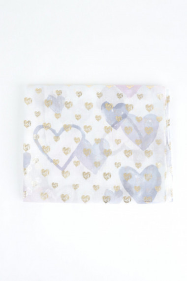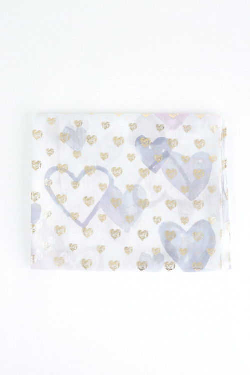 Stola aus Viskose mit Herzmuster und goldenen aufgedruckten Herzen. 100 % vi