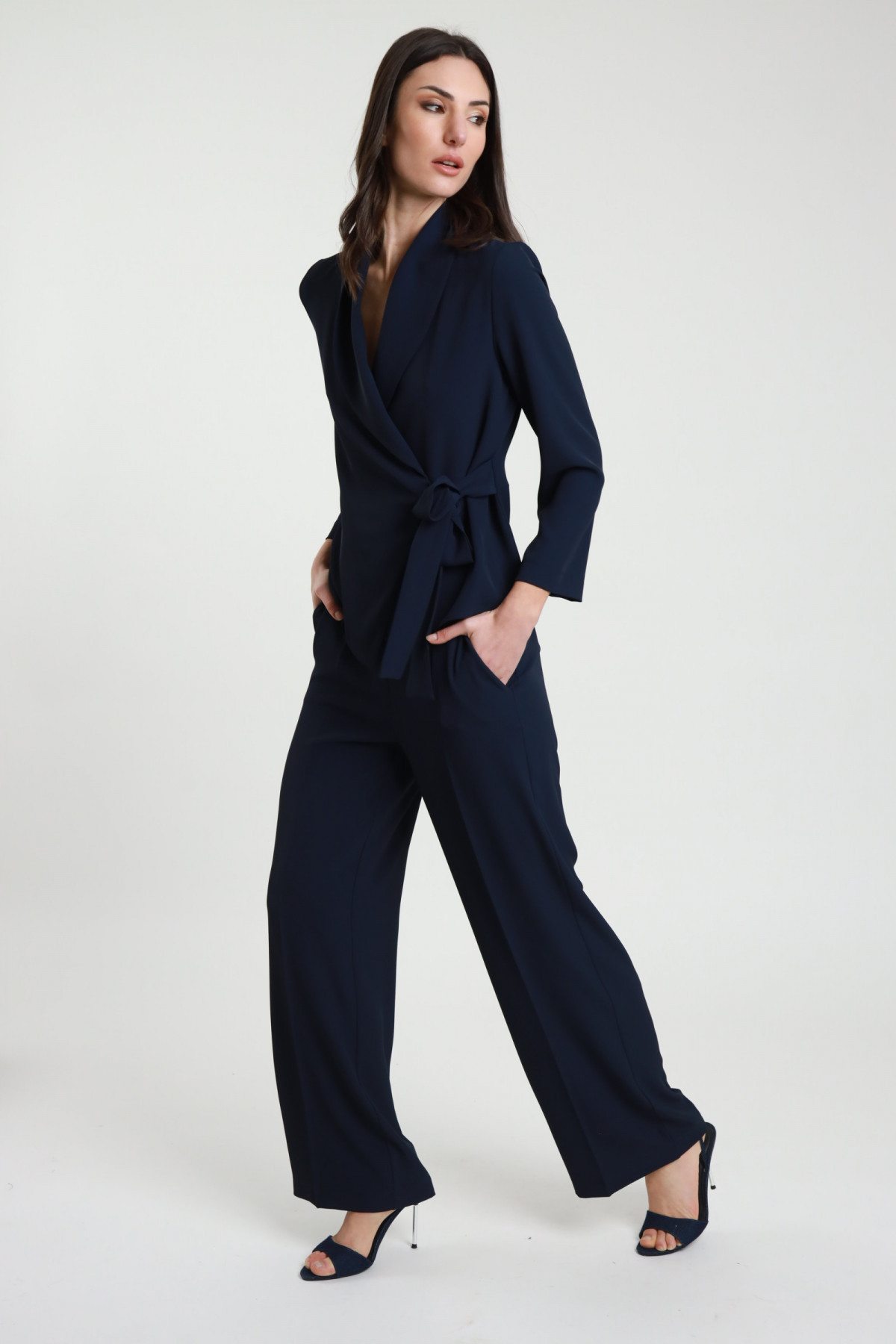 Completo Giacca Kimono con Chiusura Nodo + Pantalone Gamba Dritta con Elastico in Vita. 100%pl
