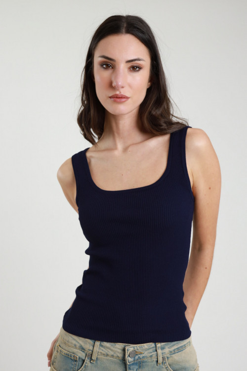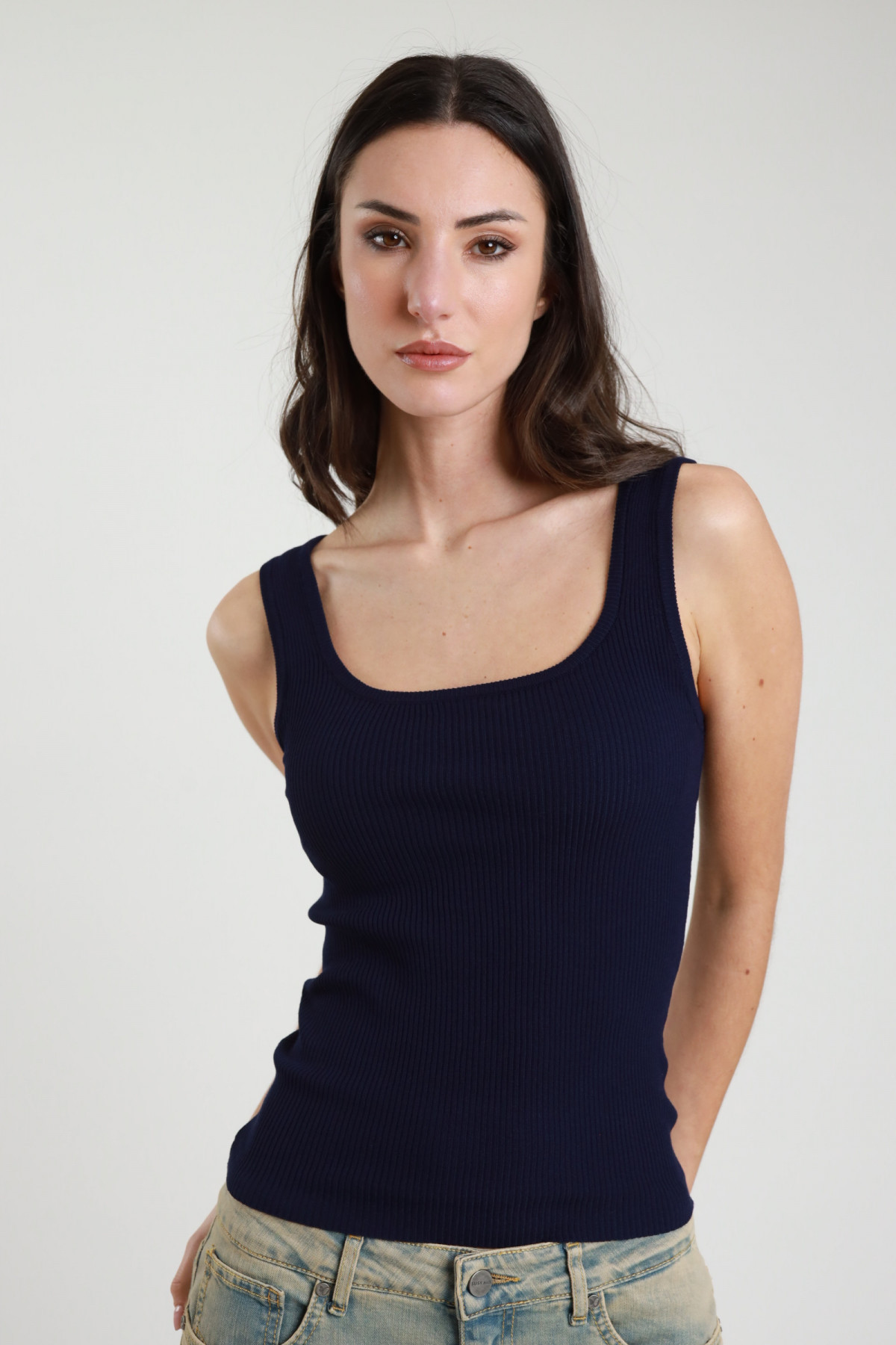 Elastisches, geripptes Tanktop mit quadratischem Ausschnitt. 70 %vi 25 %co 5 %ea