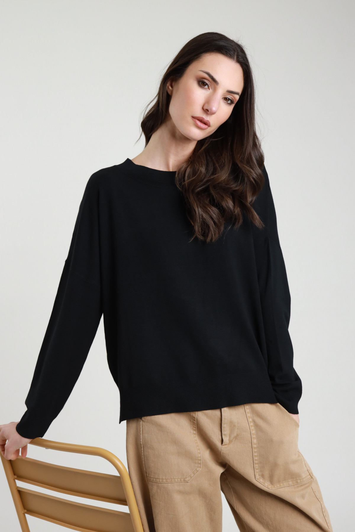 Gerippter Pullover aus Viskose mit U-Boot-Ausschnitt. 72%vi 28%pl