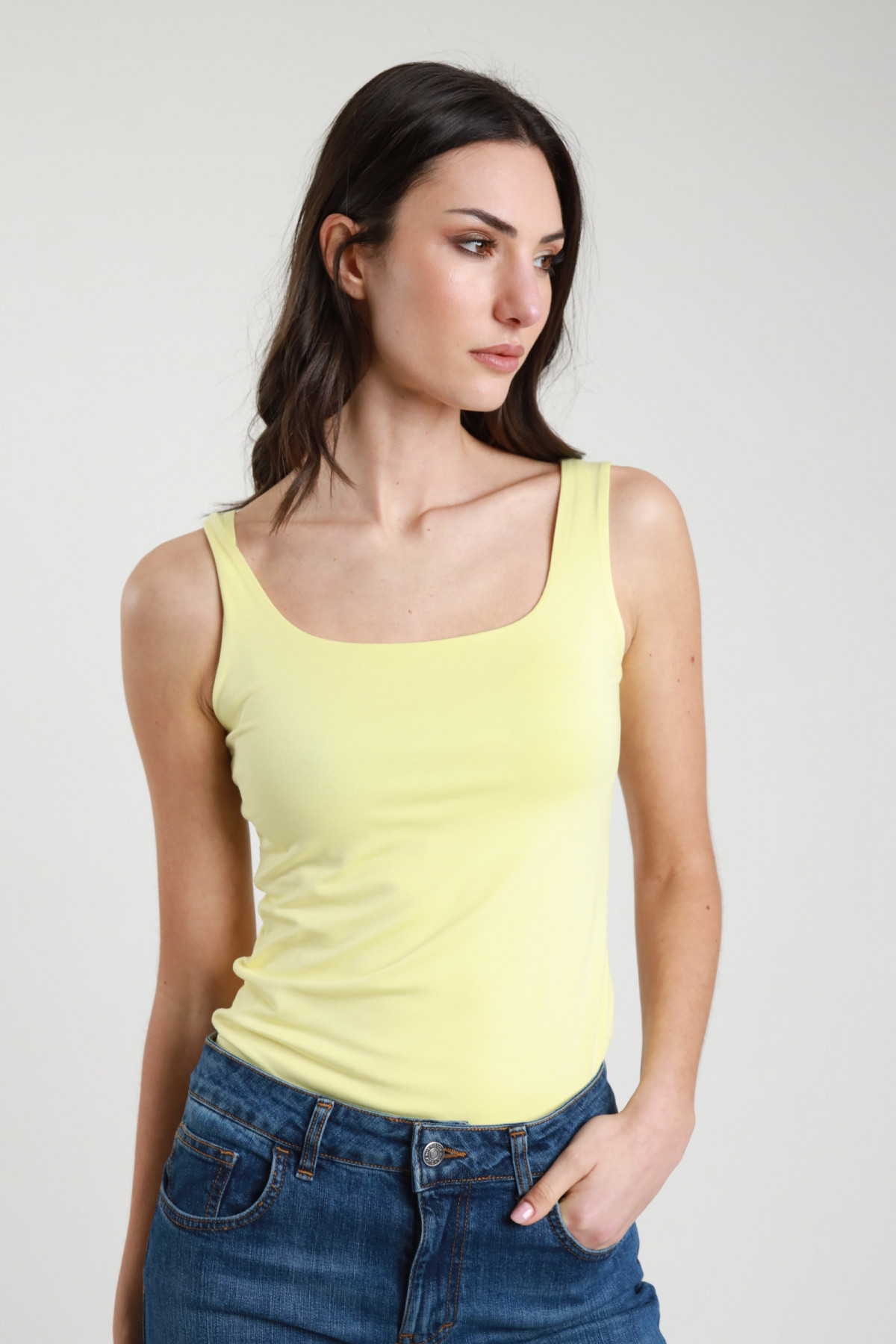 Elastisches Tanktop mit quadratischem Ausschnitt. 95 %vi 5 %ea