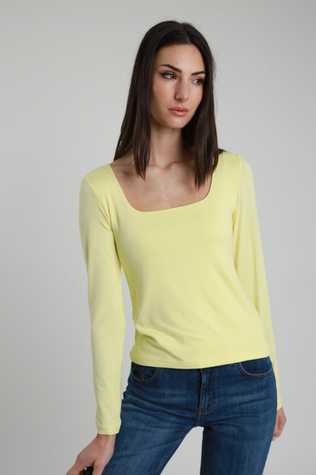 Langarmshirt, quadratischer Ausschnitt, körpernahe Passform. 95 %vi 5 %ea