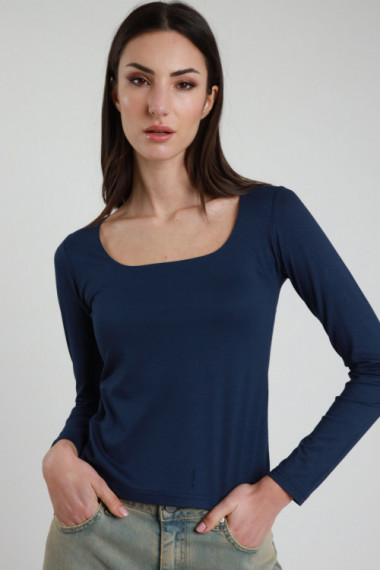Langarmshirt, quadratischer Ausschnitt, körpernahe Passform. 95 %vi 5 %ea