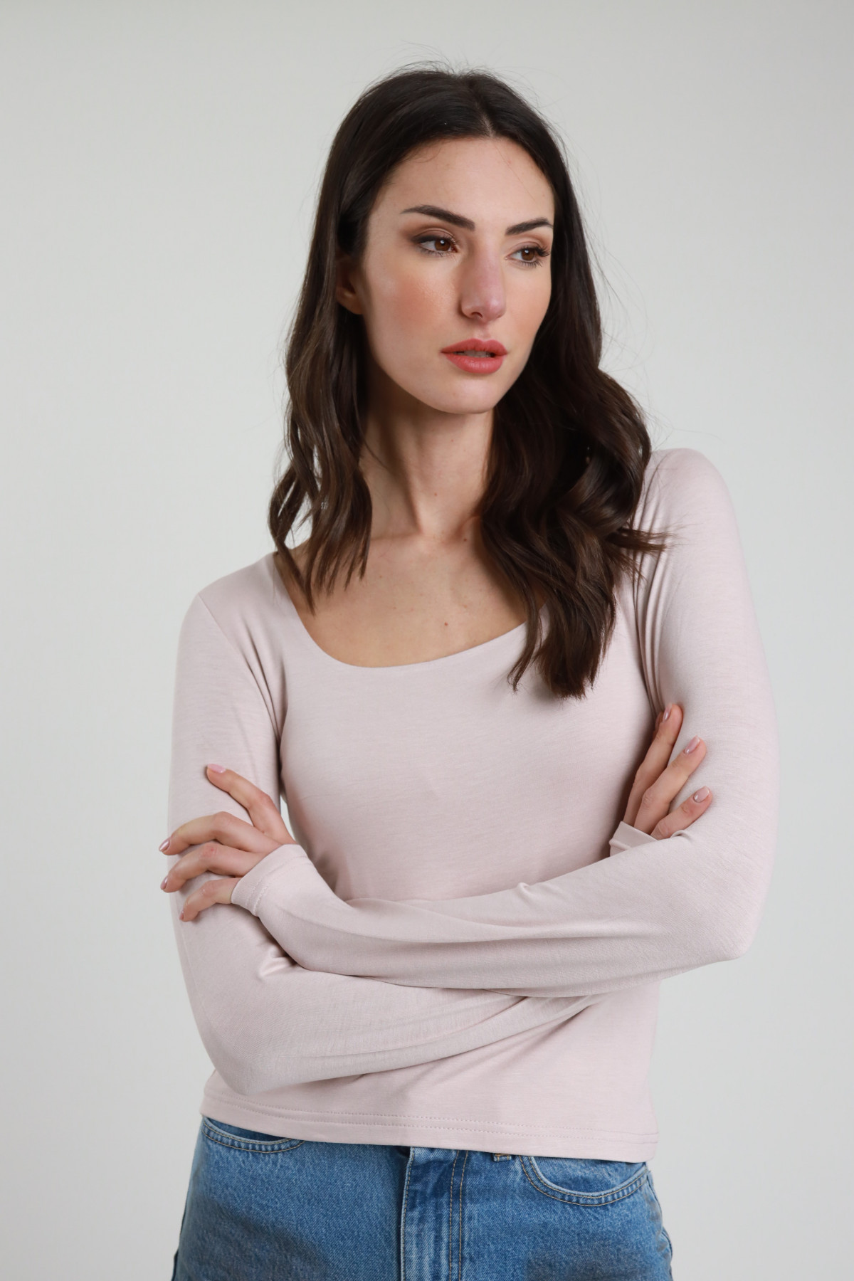 Langarmshirt, quadratischer Ausschnitt, körpernahe Passform. 95 %vi 5 %ea