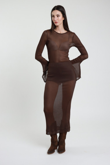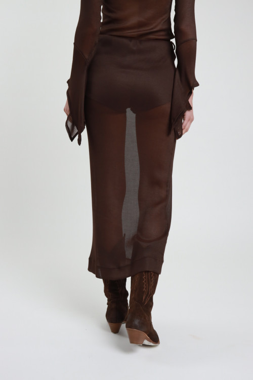 Langer, halbtransparenter Rock mit eingearbeiteter Culotte und elastischem Bund. 69 % vi 31 % pl + 95 % vi 5 % ea