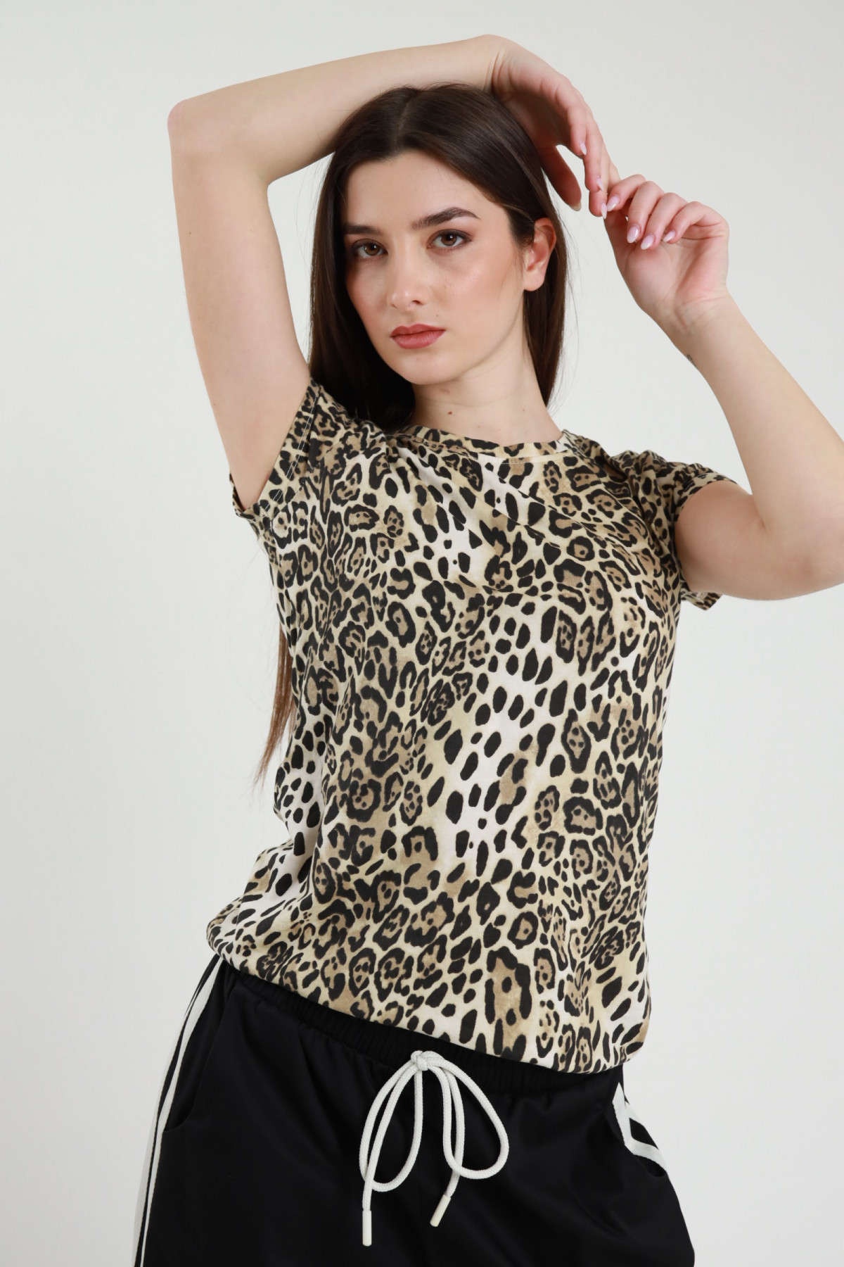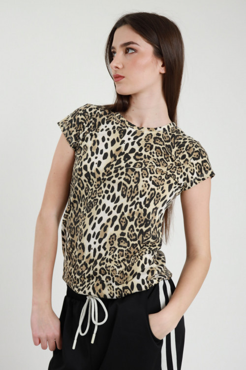Rundhals-T-Shirt aus Baumwolle mit gepunktetem Animal-Print. 100 % co