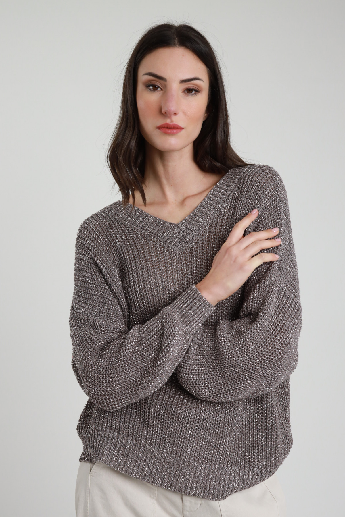 Pullover mit V-Ausschnitt aus Viskose-Lurex. 80 %vi 20 %fm