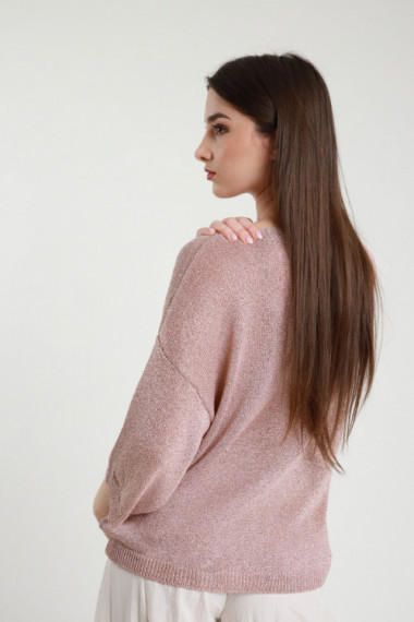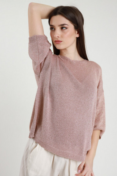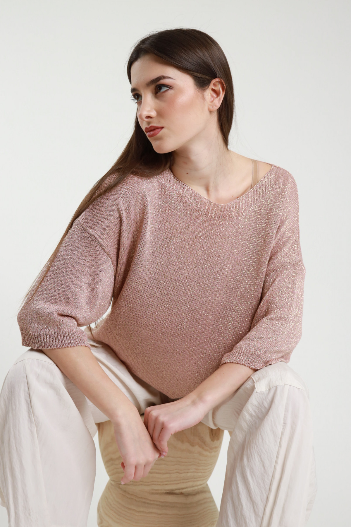Maglia Rigata in Viscosa + Dettagli Bordi a Costine in Lurex.