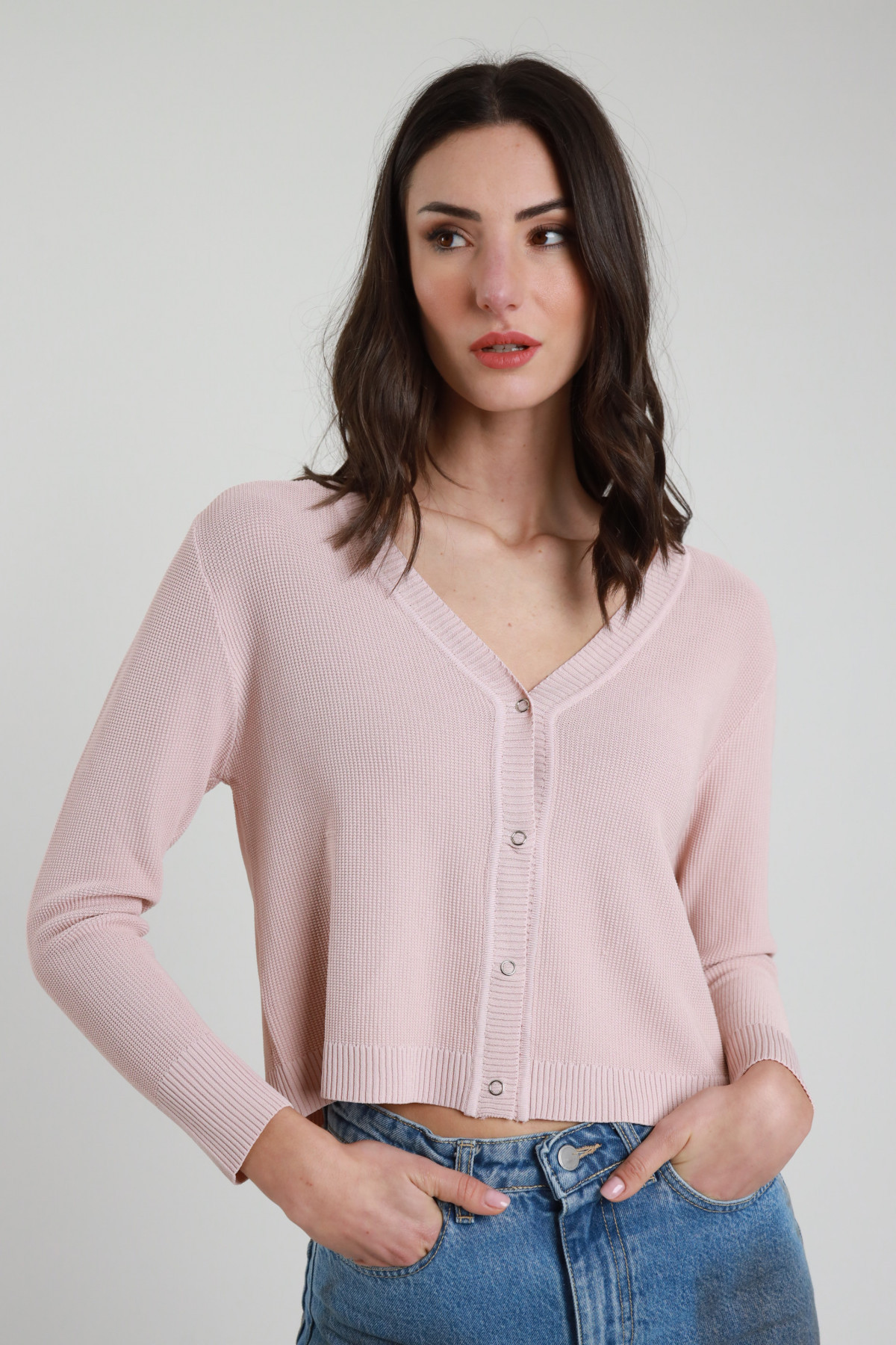 Cardigan Scollo V Ampio, Tessuto A Trama, Bottoncini A Pressione. 75%vi 25%pa