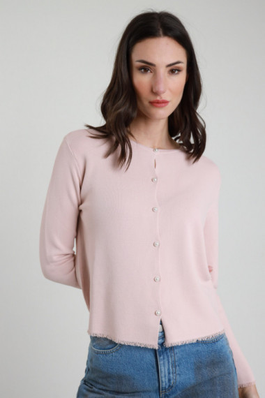 Cardigan Girocollo Con Bottoni Perline, Sfondo Sfrangiatino, Regular Fit. 75%vi 25%pa