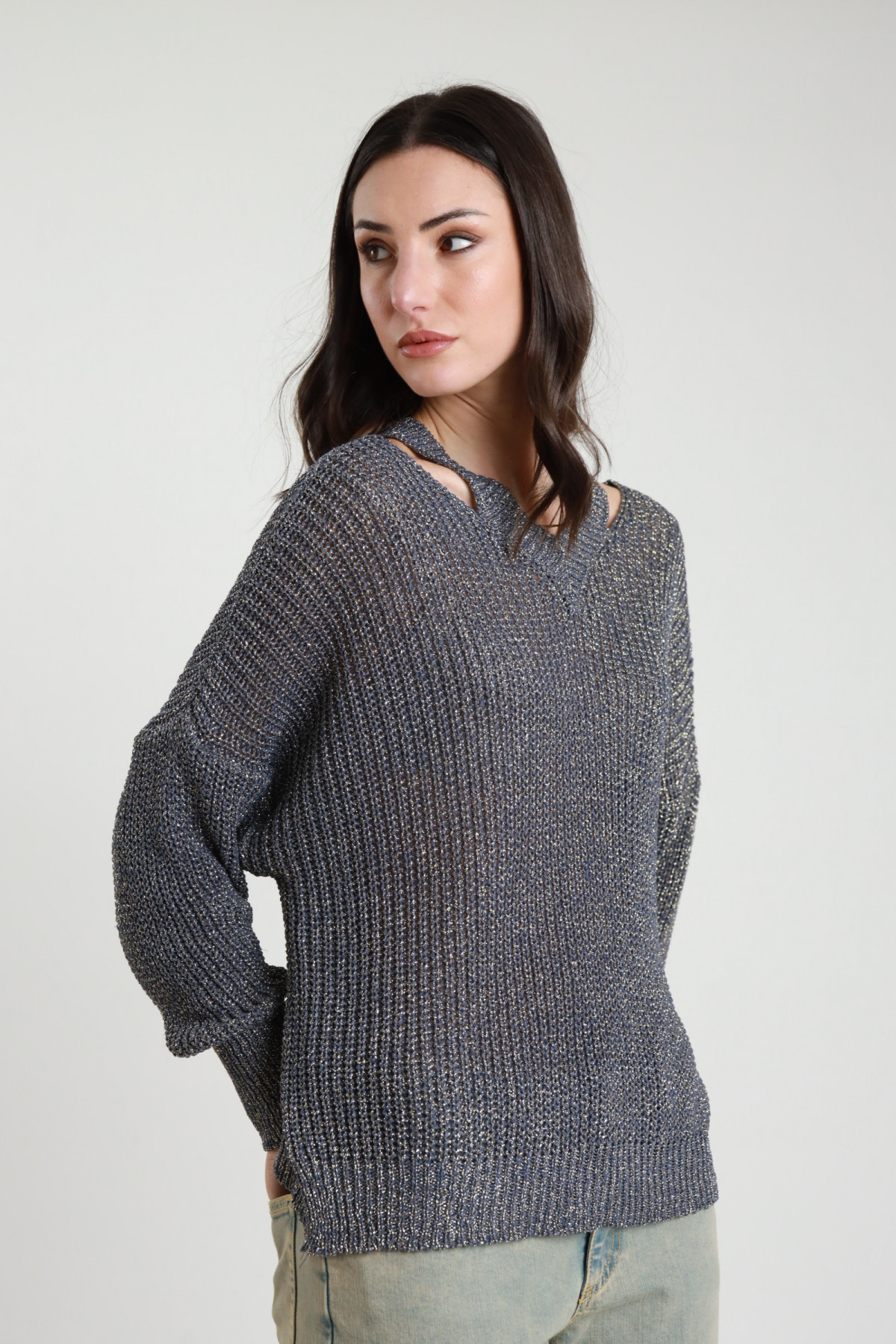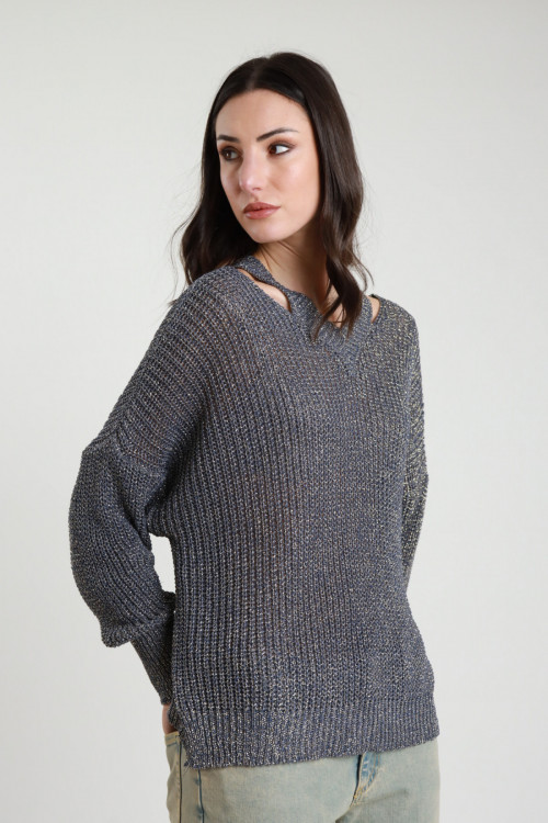 Pullover mit V-Ausschnitt und Cut-Out aus Viskose mit Lurex. 80 %vi 20 %fm
