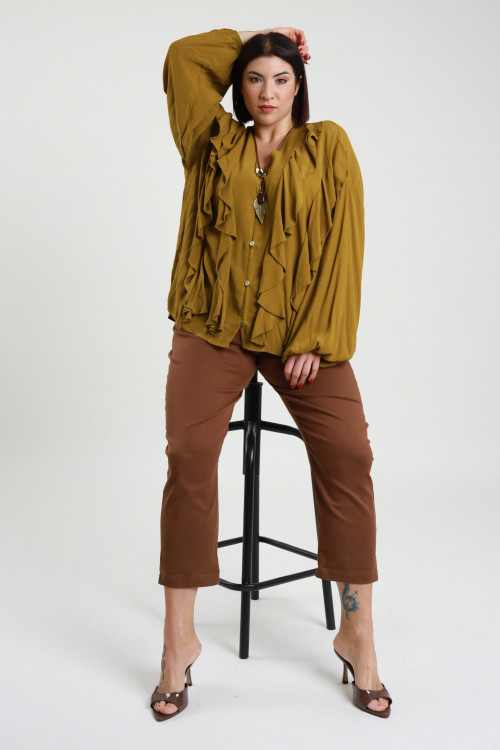 Übergroßes T-Shirt aus Stretch-Baumwolle mit Fransendetails an den Ärmeln – Curvy Susy Star-Linie. 94 % CO 6 % Stück