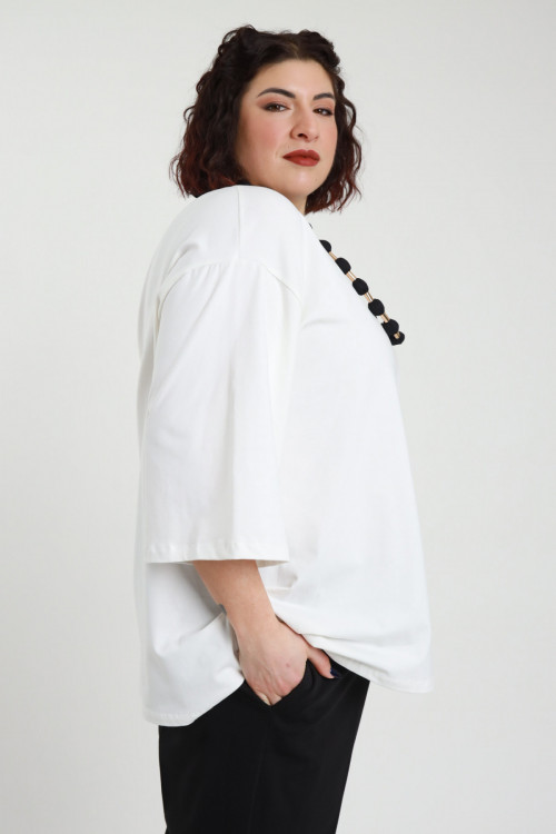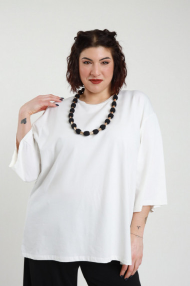 Maxi-Rundhals-T-Shirt aus Stretch-Baumwolle mit halben Ärmeln und Halskette – Curvy Susy Star-Linie. 94 % CO 6 % Stück