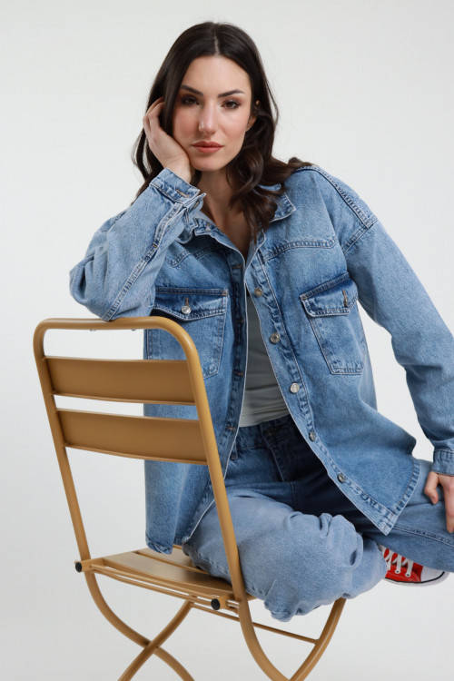 Übergroße Jeans-Hemdjacke mit Fade-Effekt und Knopfverschluss. 100 % co