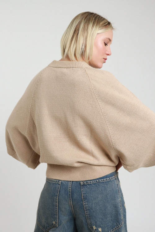 Cardigan Scollo V Ampio, Tessuto A Trama, Bottoncini A Pressione. 75%vi 25%pa