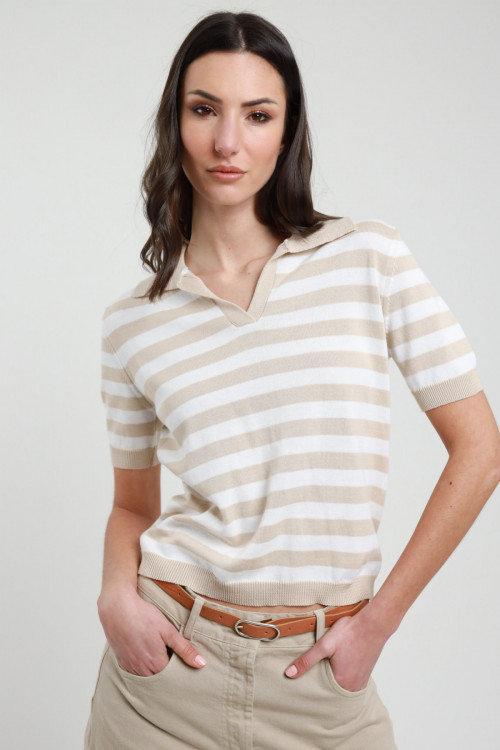 Polo Mezze Maniche in Cotone in Fantasia Righe.  100%co
