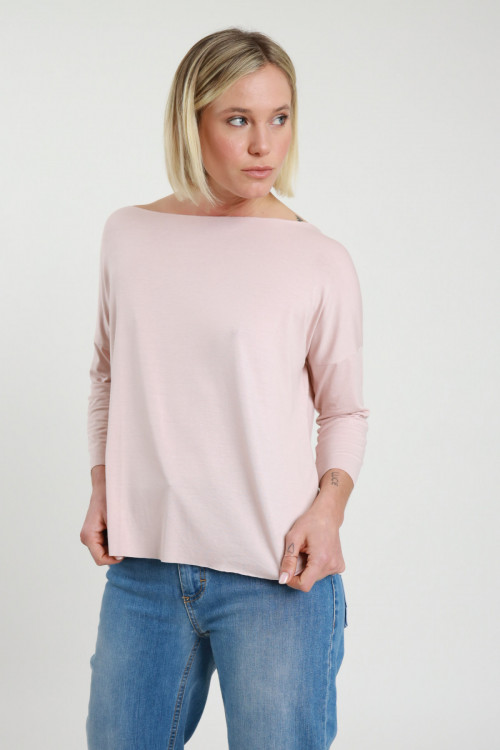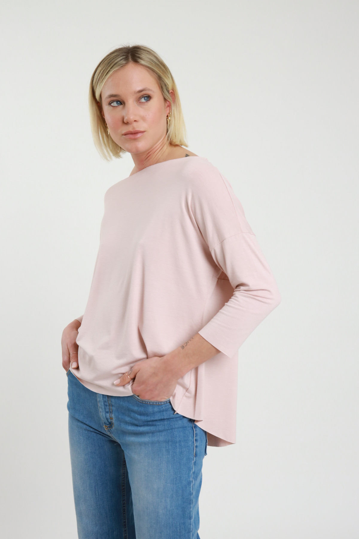 Kimono-T-Shirt mit 3/4-Ärmeln aus Stretch-Viskose. 94 %vi 6 %ea