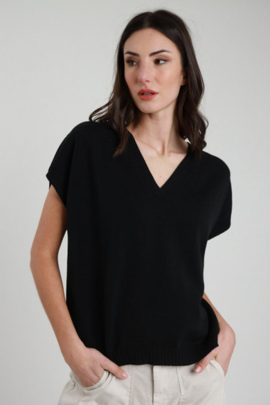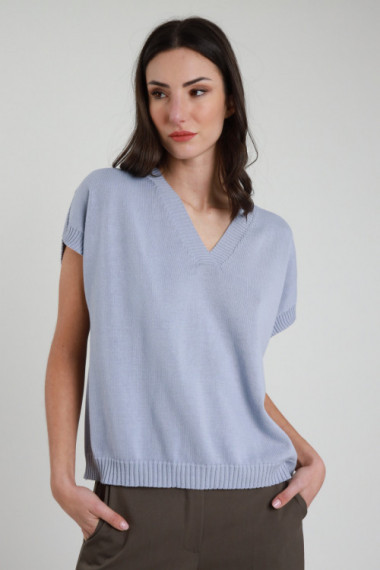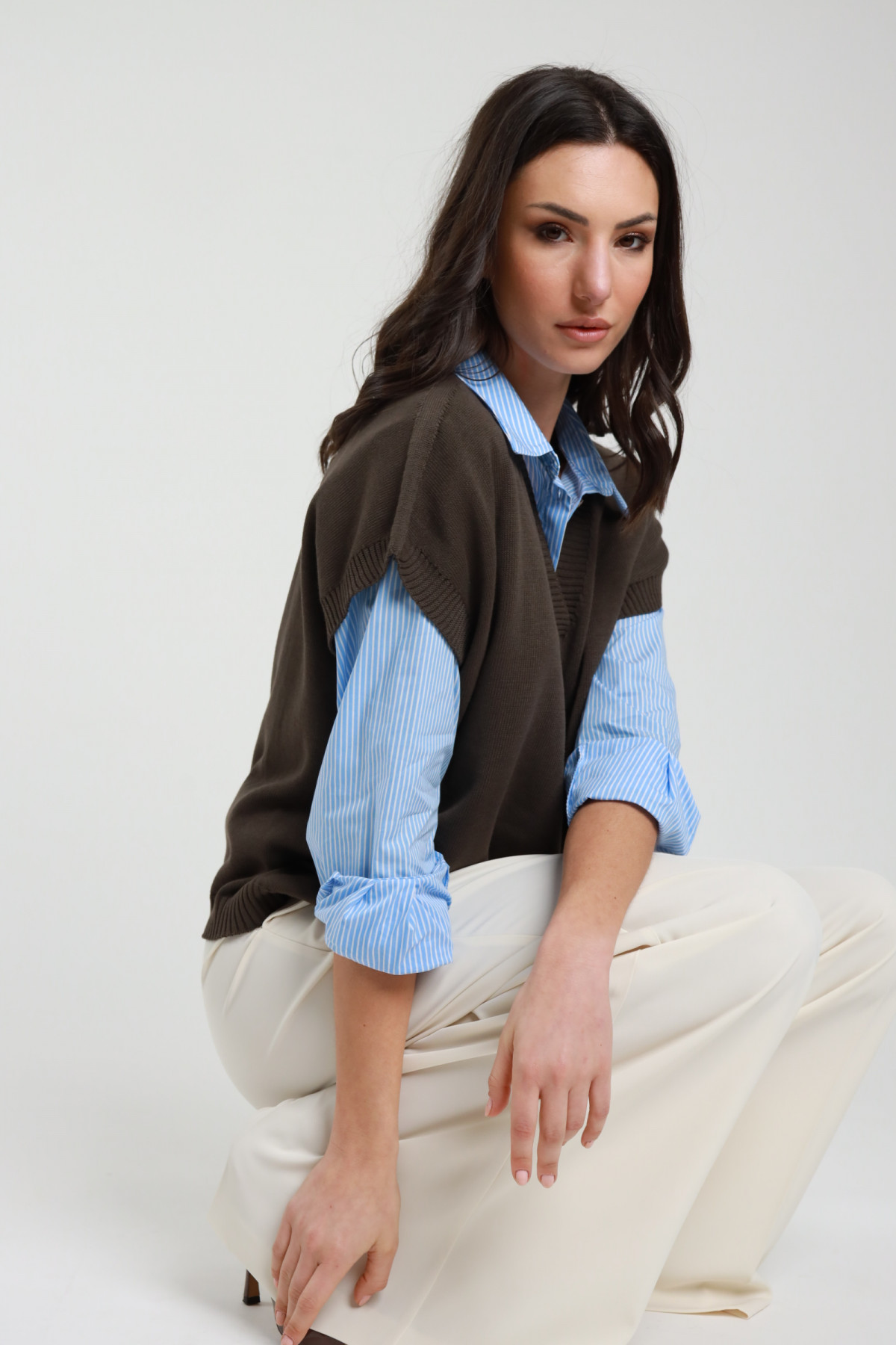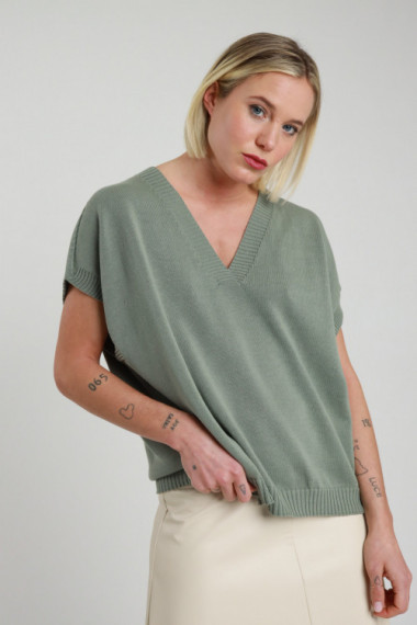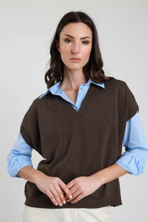 Gestrickte Weste, V-Ausschnitt, breite Schulter, Übergröße. 100 % co