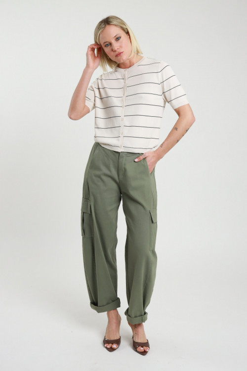 Bananenhose mit großen Taschen, Reißverschluss und Knopfverschluss und Taillengürtel. 100 % co