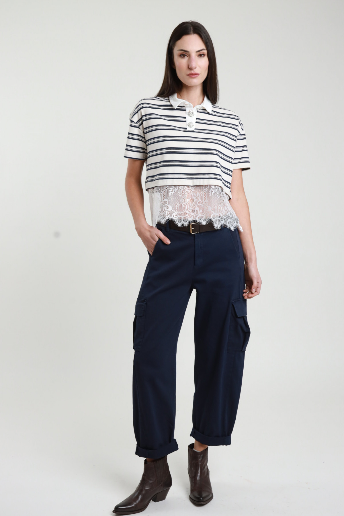 Bananenhose mit großen Taschen, Reißverschluss und Knopfverschluss und Taillengürtel. 100 % co