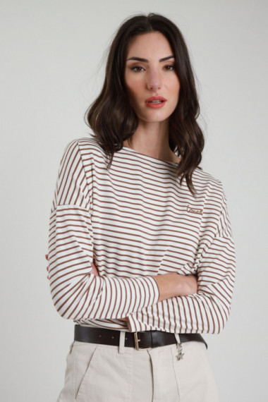 Langärmliges T-Shirt mit Streifenmuster und U-Boot-Ausschnitt aus Stretch-Viskose. 95 %vi 5 %ea
