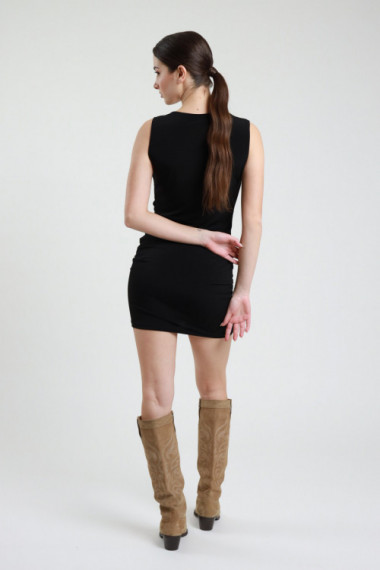 Long-sleeved dress with perforated central ring and curls. Midi cut. 95%pl 5%ea