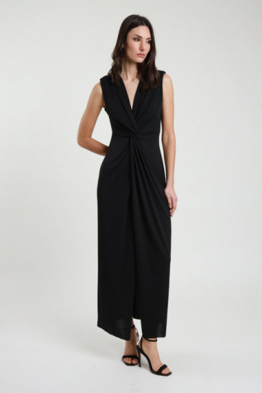 Tubino Midi Smanicato Scollo Rotondo con Spacco Profondo sul Retro.