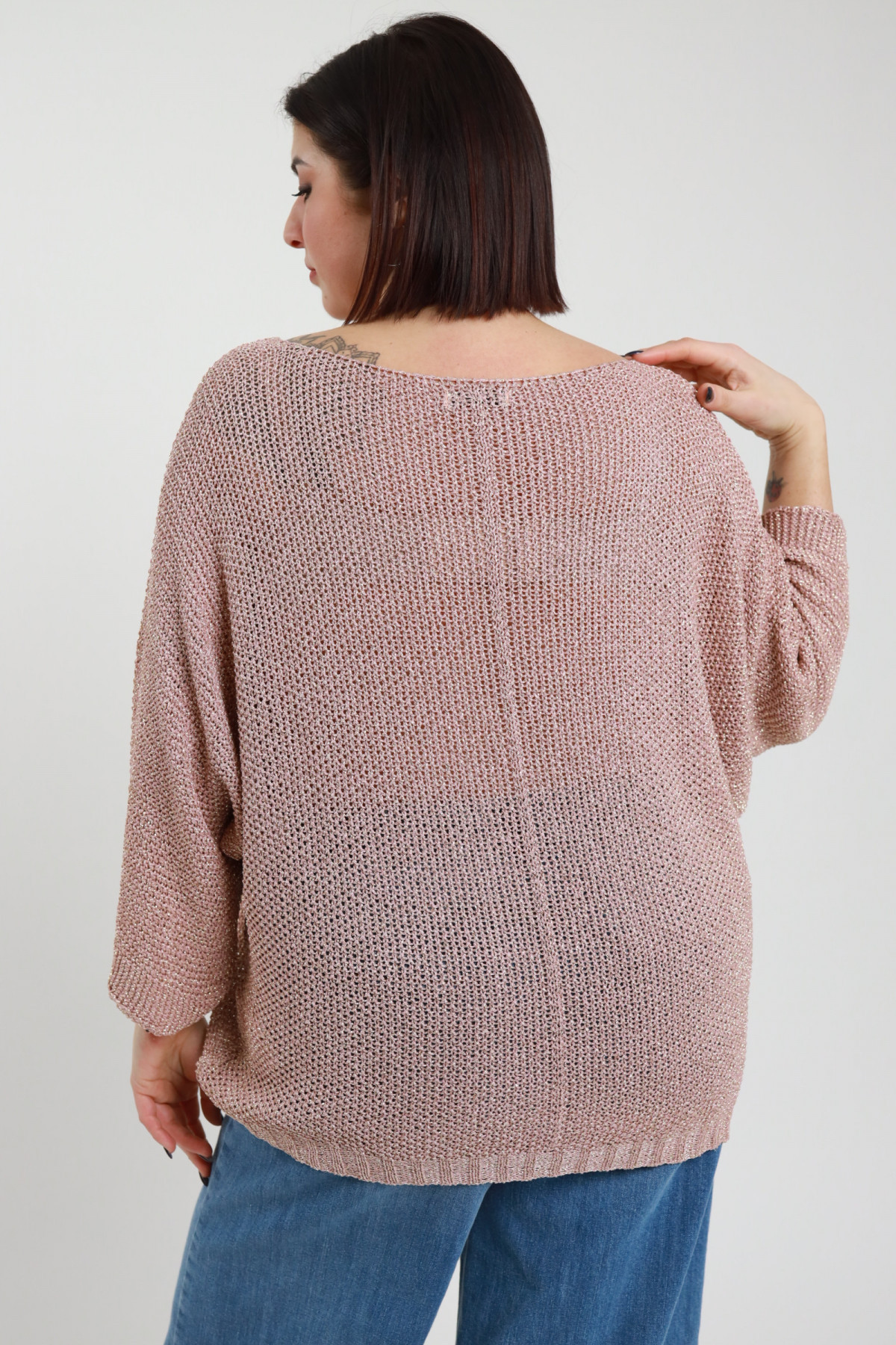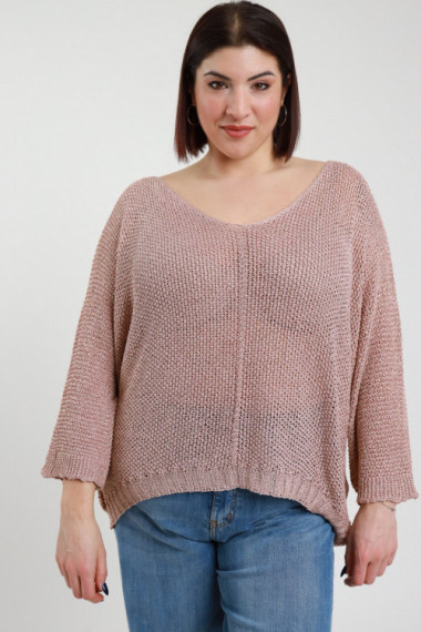 Maglia Traforata Scollo Barchetta, Maniche A 3/4, Inserti In Lurex - Linea Curvy Susy Star. 80%vi 20%fm