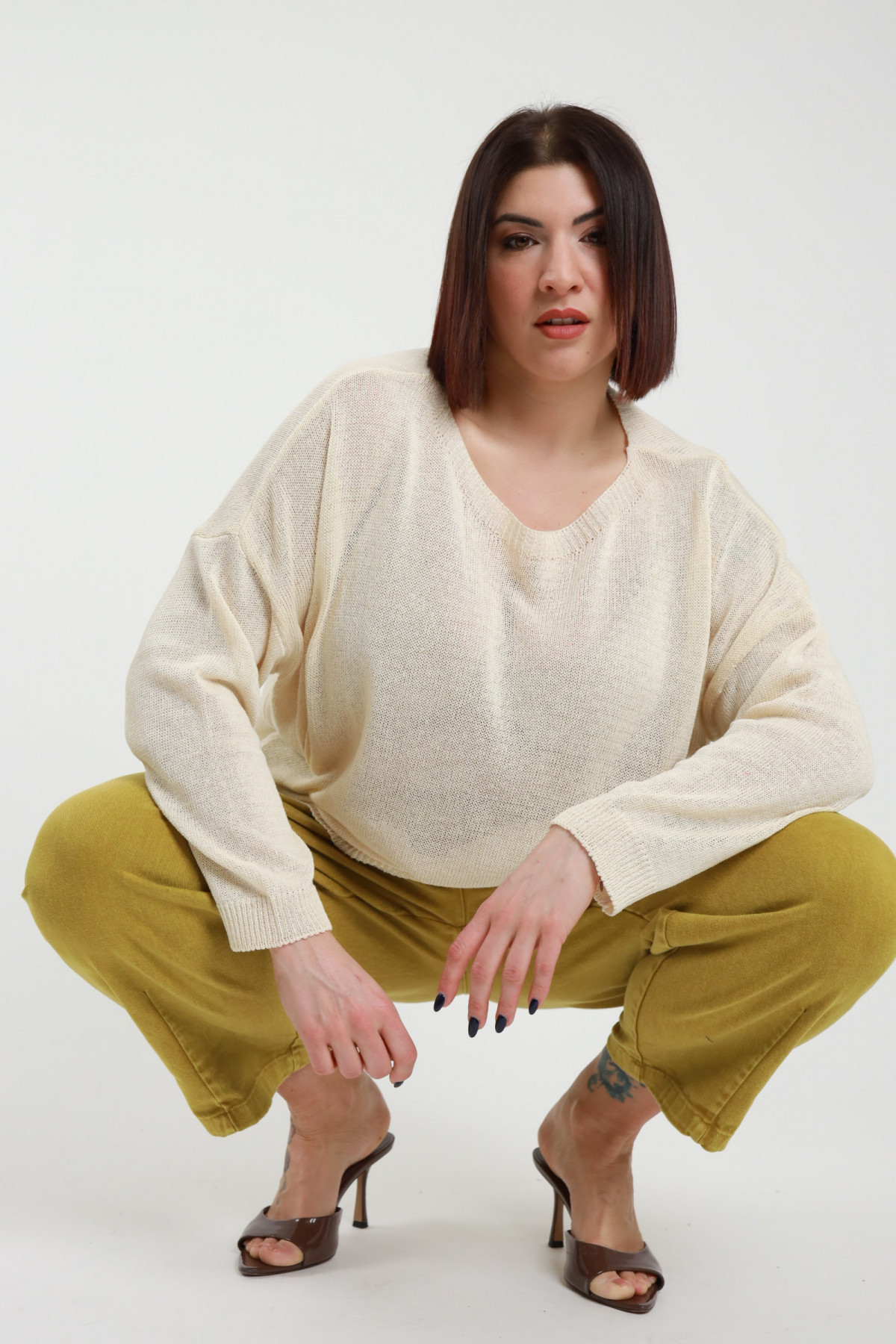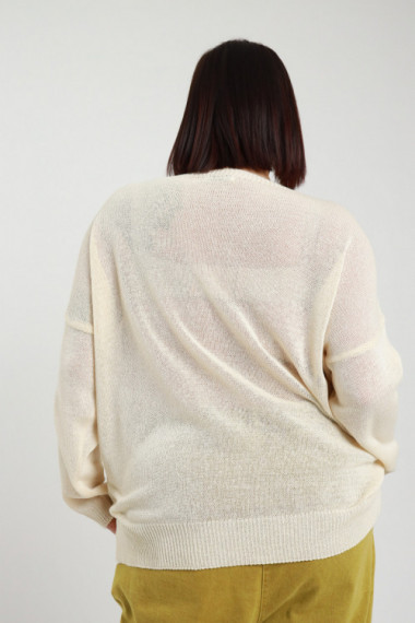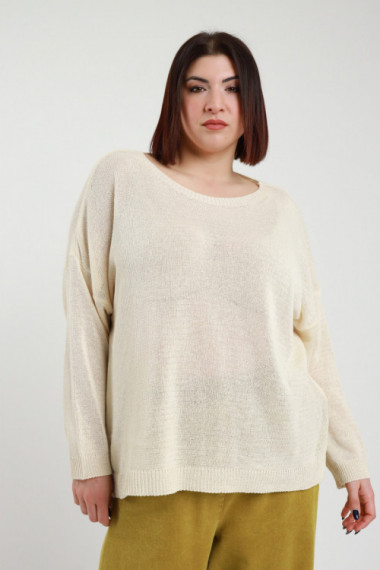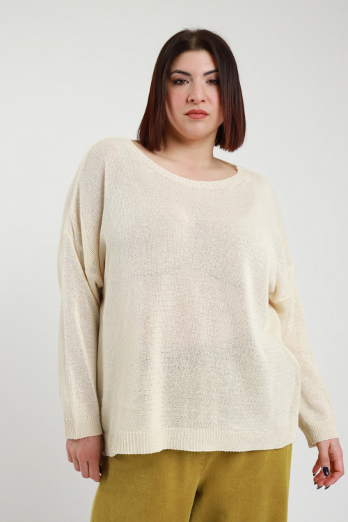 Leichter Pullover mit Rundhalsausschnitt und Mini-Perforationsstruktur, Oversize-Schnitt – Curvy Susy Star-Linie. 50%Co 50%Stk