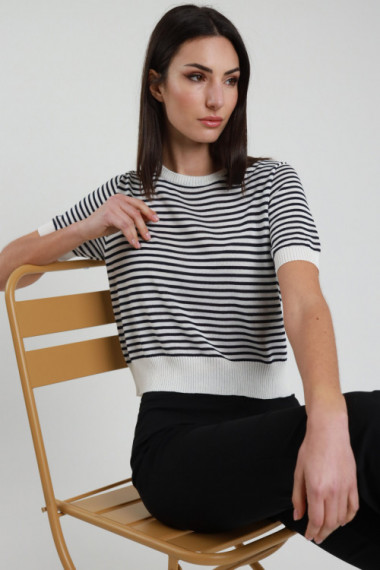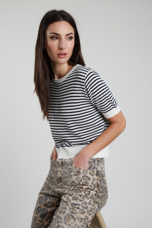Maglia Girocollo A Righe e Con Cuori, Spalla Scesa, Fit Leggermente Over.