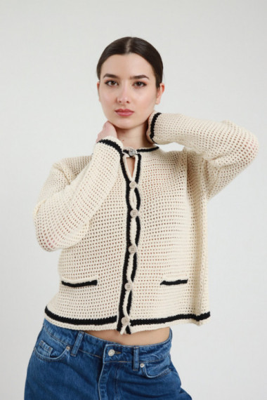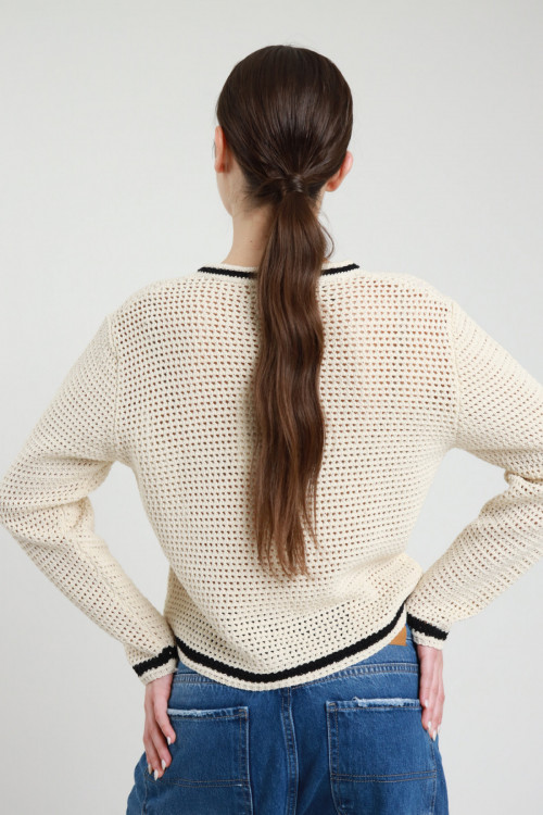 Maglia in Viscosa Lurex a Righe con Scollo a Barca e Costine sui Bordi.