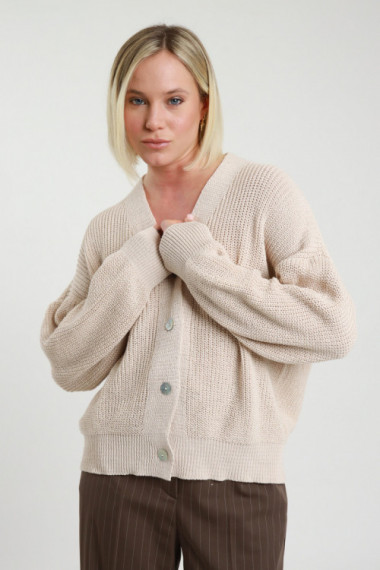 Strickjacke aus Baumwollstrick mit englischem Rippenmuster und Knopfverschluss. 50 % CO 50 % AC