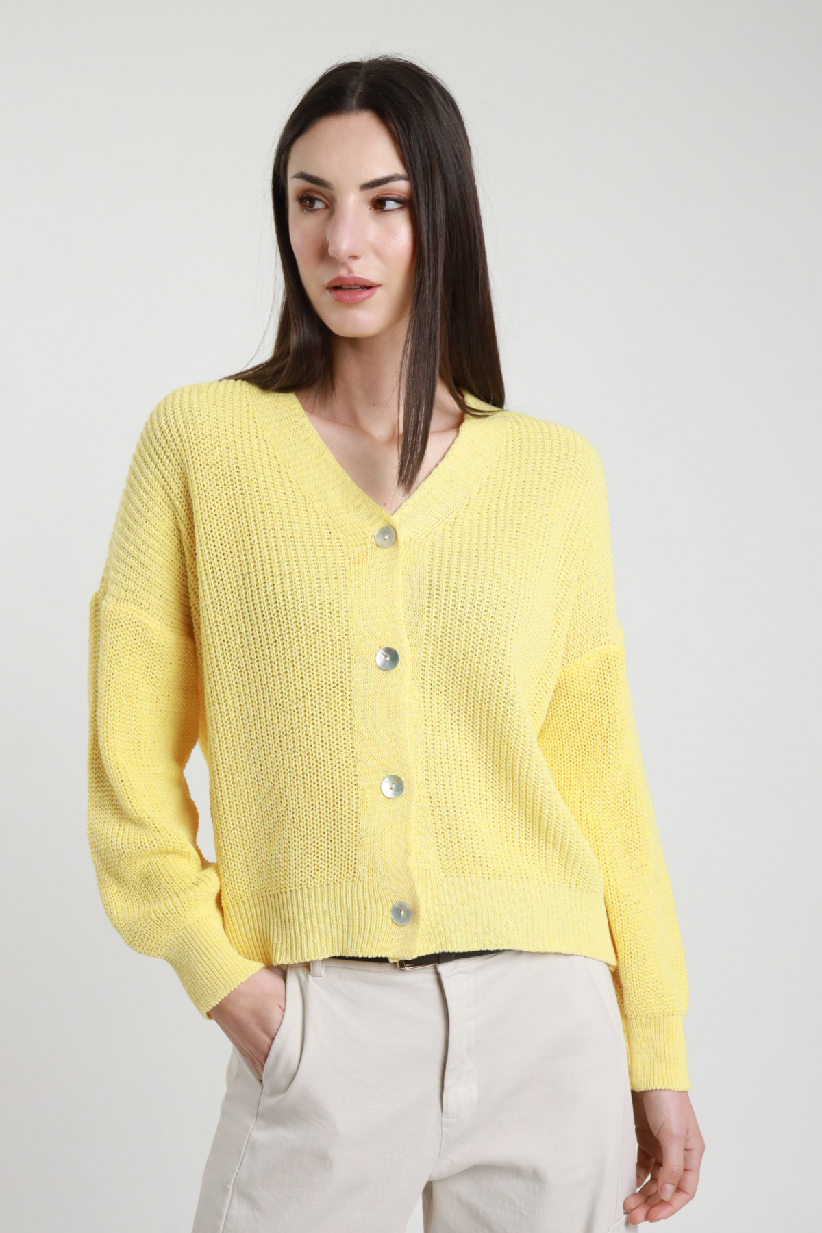 Strickjacke aus Baumwollstrick mit englischem Rippenmuster und Knopfverschluss. 50 % CO 50 % AC