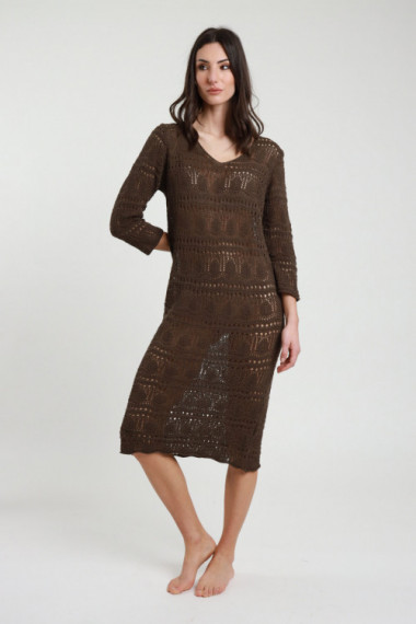 Cardigan Scollo V Ampio, Tessuto A Trama, Bottoncini A Pressione. 75%vi 25%pa