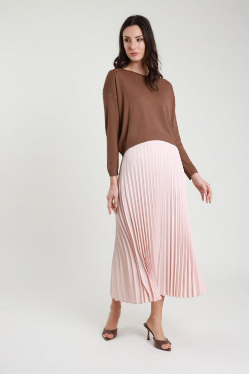 Langer Faltenrock mit elastischem Bund. 79 %pl 18 %vi 4 %ea