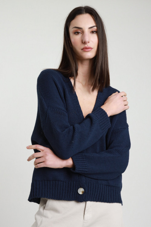 Cardigan Scollo V Ampio, Tessuto A Trama, Bottoncini A Pressione. 75%vi 25%pa