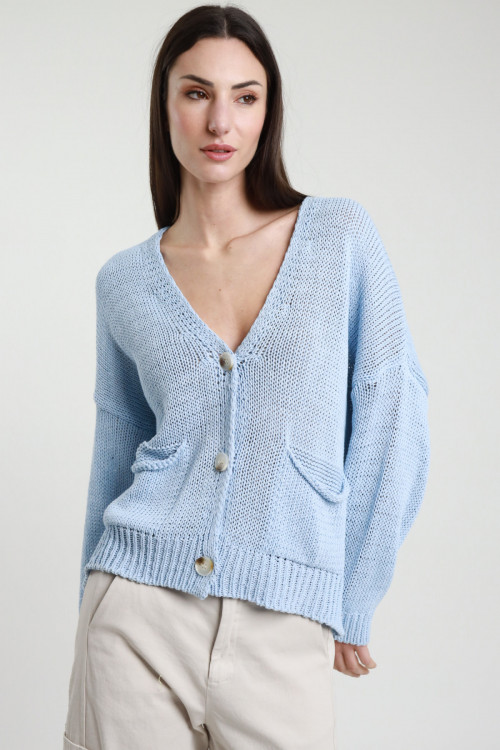 Cardigan Scollo V Ampio, Tessuto A Trama, Bottoncini A Pressione. 75%vi 25%pa