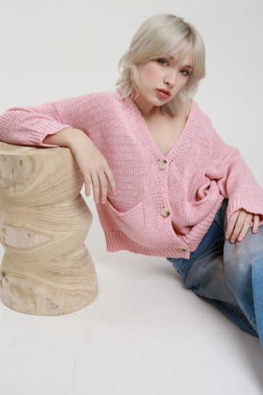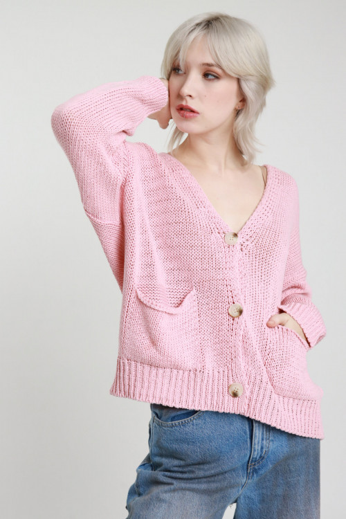 Cardigan in Maglia di Cotone a Costa Inglese, Chiusura Bottoni.