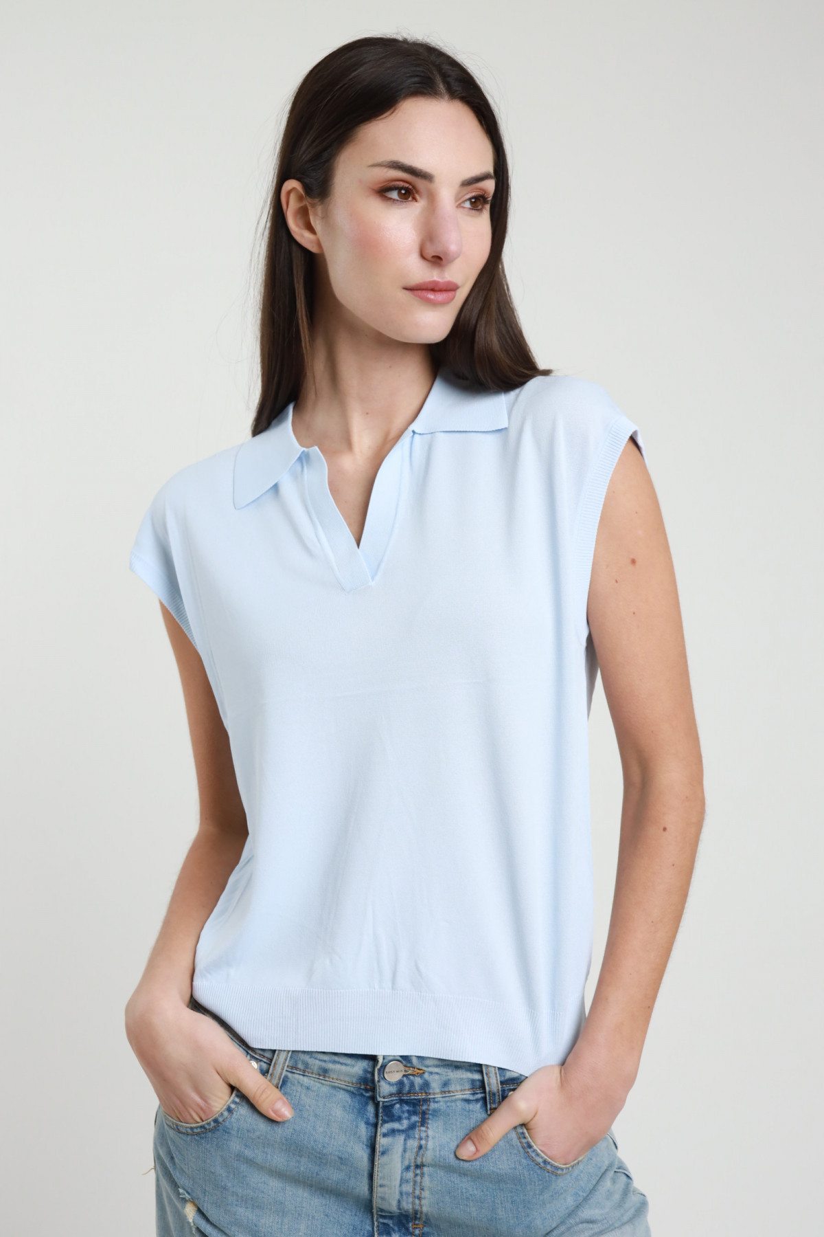Übergroßes, ärmelloses Poloshirt aus Viskose. 63%vi 37%ny