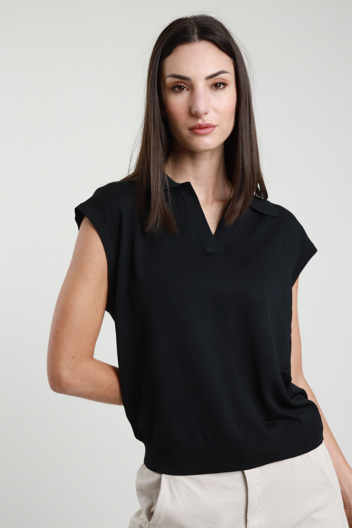 Übergroßes, ärmelloses Poloshirt aus Viskose. 63%vi 37%ny