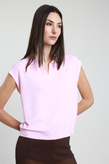 Übergroßes, ärmelloses Poloshirt aus Viskose. 63%vi 37%ny