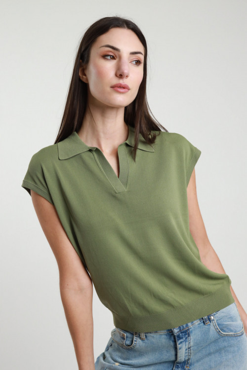 Übergroßes, ärmelloses Poloshirt aus Viskose. 63%vi 37%ny