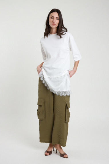 Über T-Shirt mit halben Ärmeln, Petticoat mit asymmetrischer Spitze. 100 % co