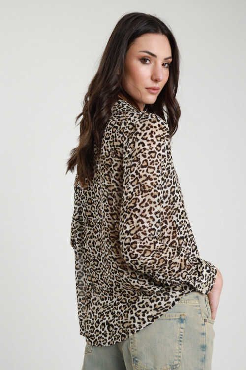 Viskosehemd mit gepunktetem Animal-Print. 100 % vi