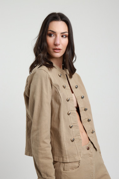 Giacca Aperta Stile Militare con Cuciture e Bottoni sul Fronte. 97%co 3%ea