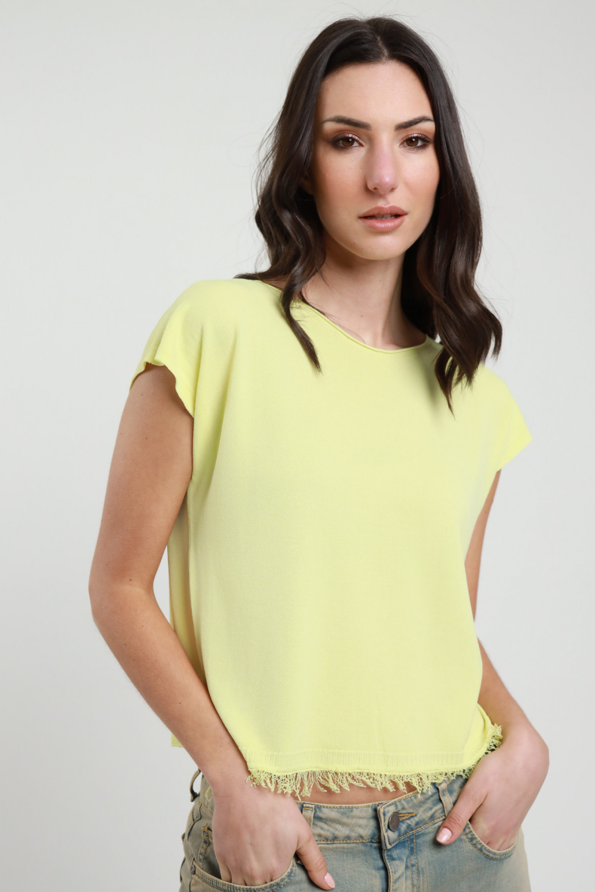 Halbärmeliges Hemd mit Fransen an der Unterseite. 80%vi 20%ny