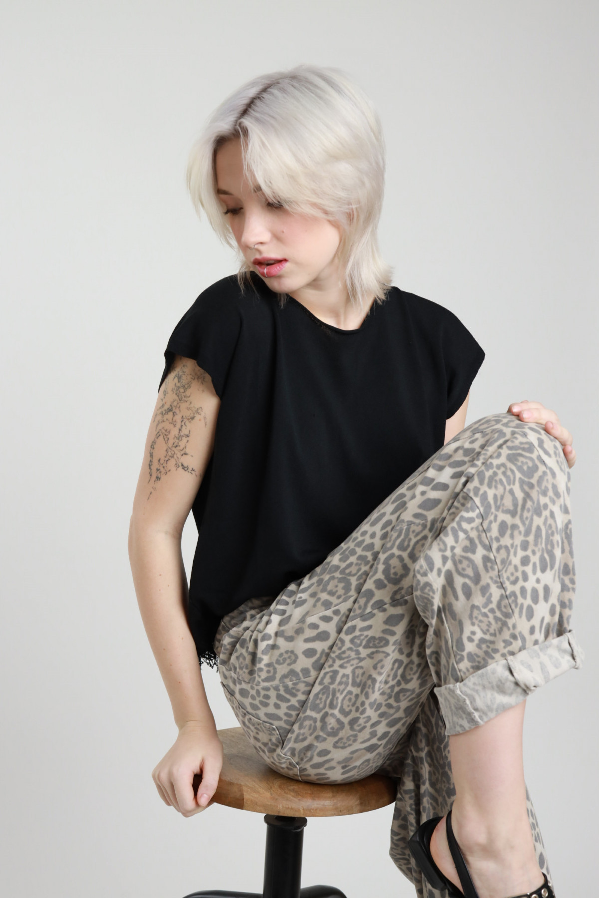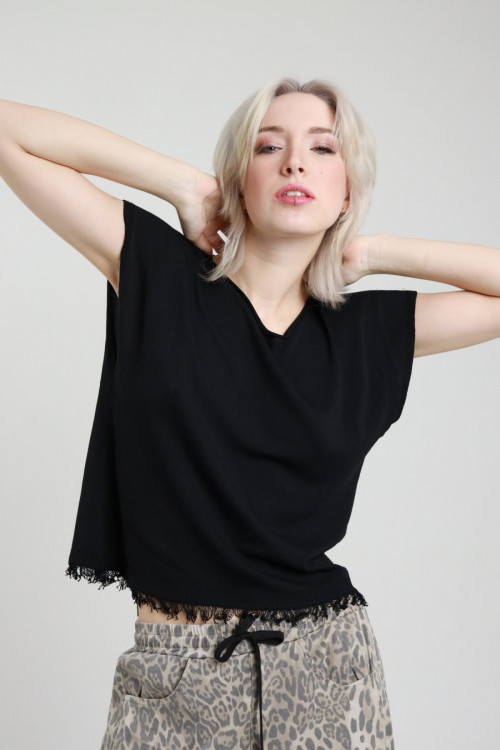 Halbärmeliges Hemd mit Fransen an der Unterseite. 80%vi 20%ny