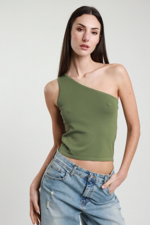 Canotta Canettata Con Scollo Tondo e Spalline Strette, Borchiette In Strass Apllicate. 95%co 5%ea