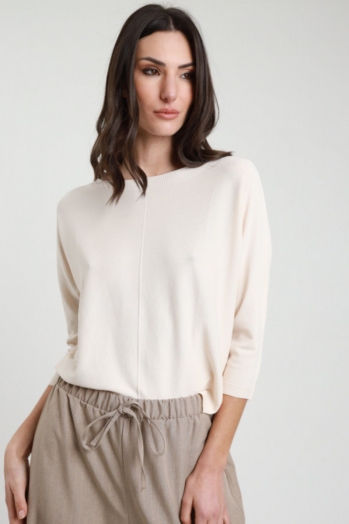 Maglia A Righe Larghe, Scollo Barchetta e Maniche 3/4. 100%vi