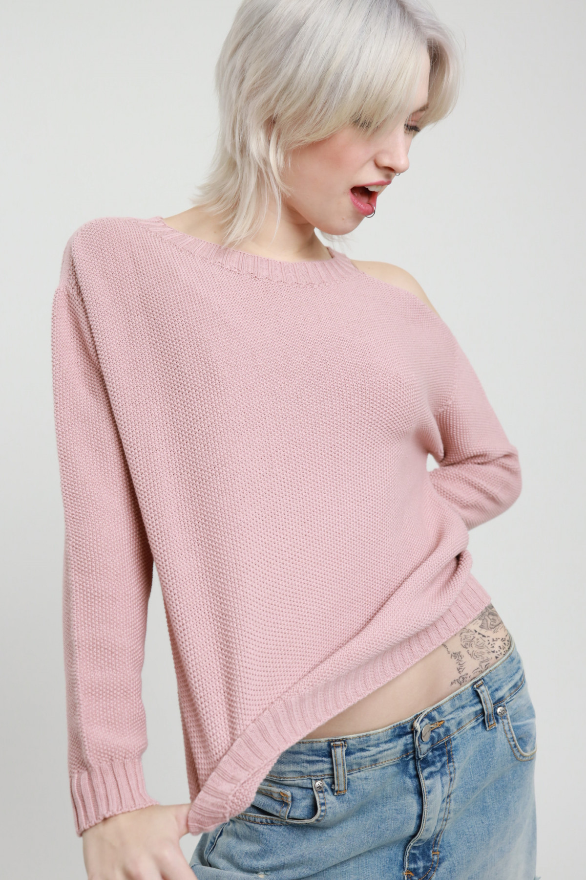 Baumwollstrickpullover mit Cut-Out an der Schulter. 100 % co